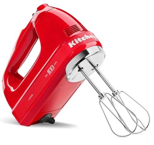 KitchenAid 5-Speed Ultra Power Hand Mixer A compact hand mixer with a powerful punch this KitchenAid tucks away easily into a cabinet or drawer when not in use. It features a DC motor that is more energy-efficient and lighter. Click to see what happens Read full answer.